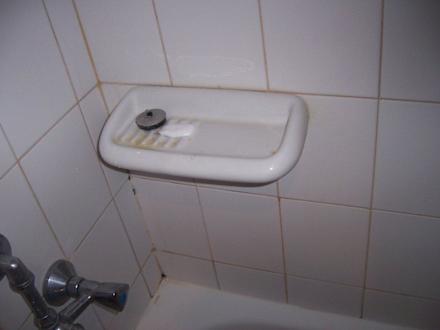 Seifenschale im BadezimmerDie Seifenschale im Badezimmer wurde 14 Tage nicht gereinigt. Ebenso nicht die Fliesen über der Badewanne