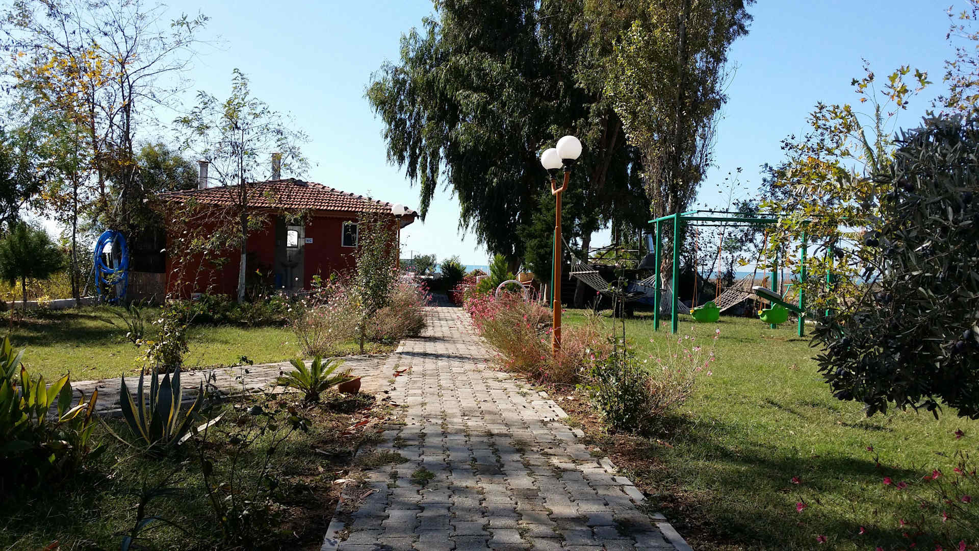 Blick vom Hotel zum Restaurant