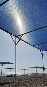 StrandAm Strand sind Liegen mit Auflagen und Sonnenschirm inklusive. Man findet immer ein freies Plätzchen am Meer.
