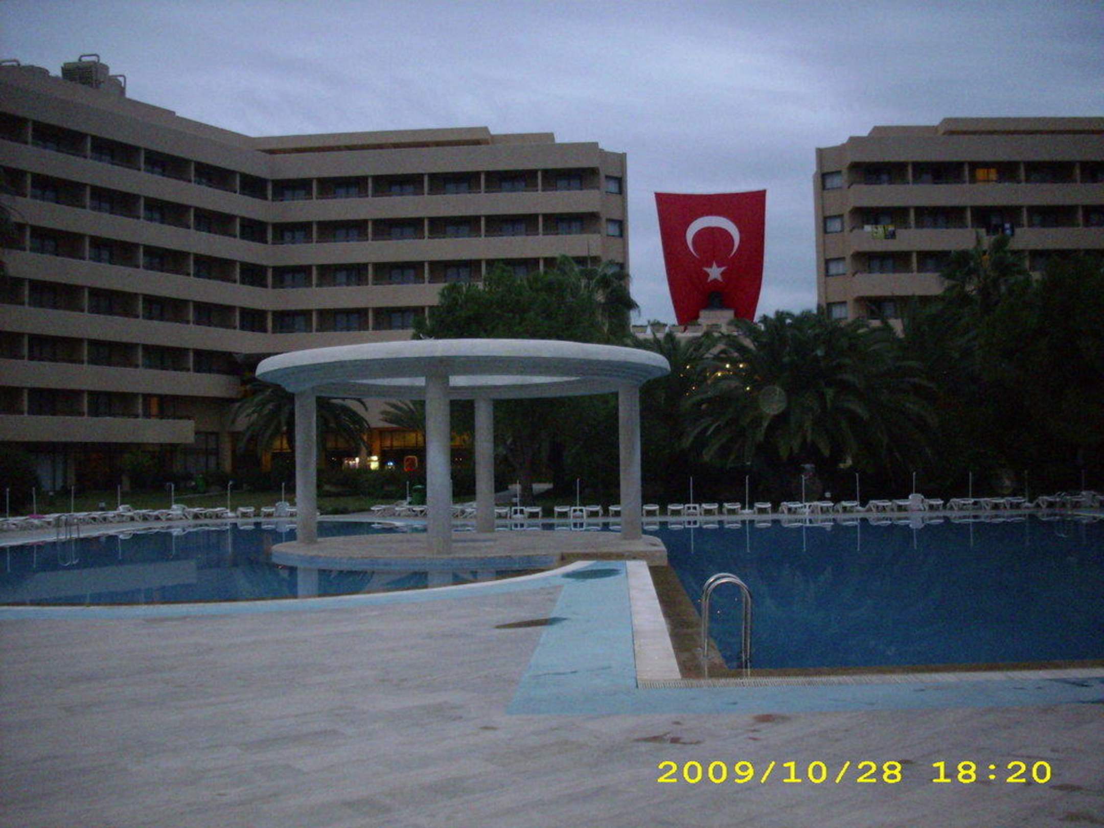 Poolanlage am Abend