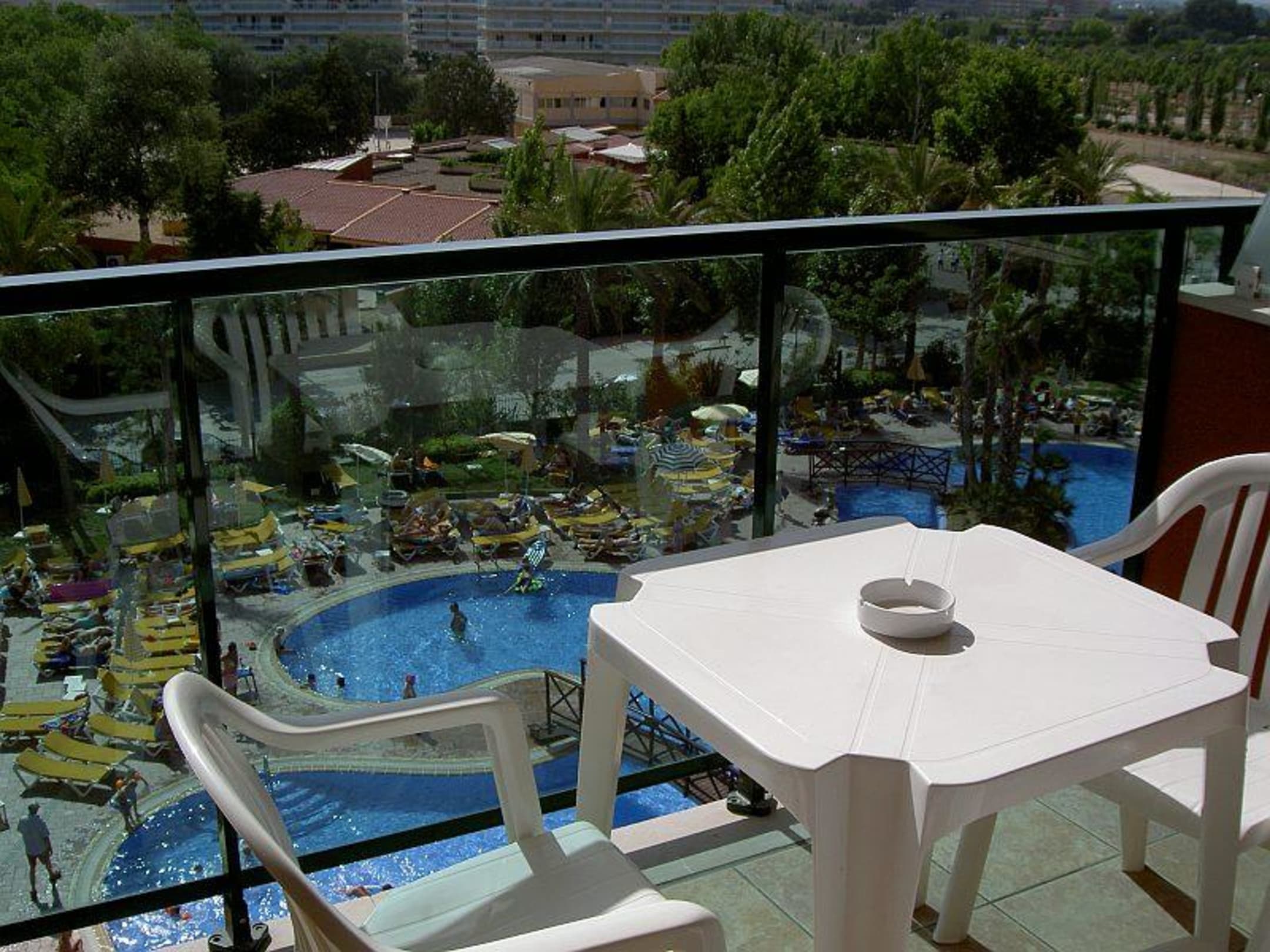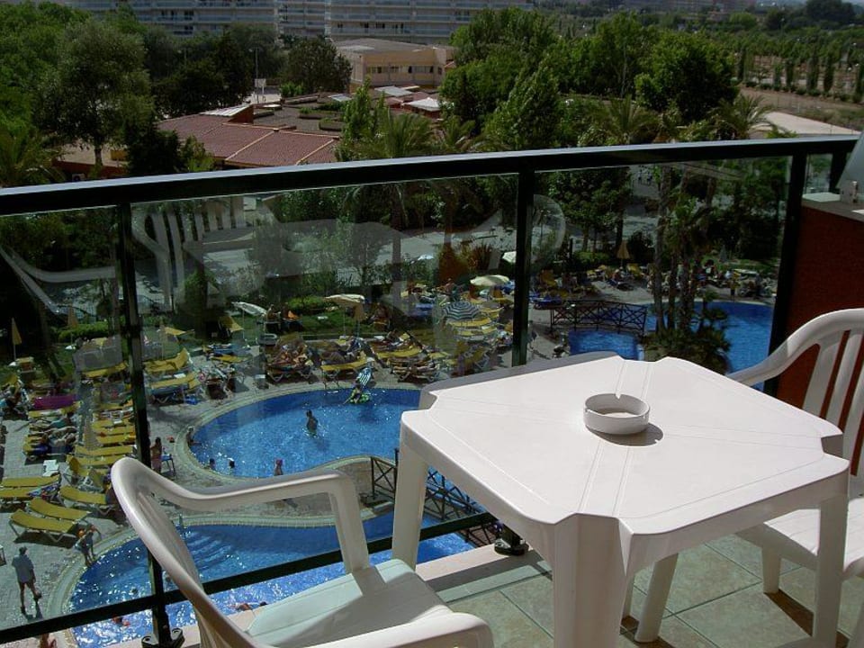 Blick vom Balkon des Zimmers auf den Pool...