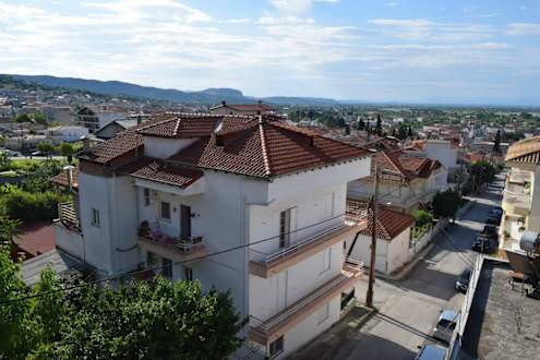 Blick von der Dachterrasse des Hotels in Richtung Kalambaka