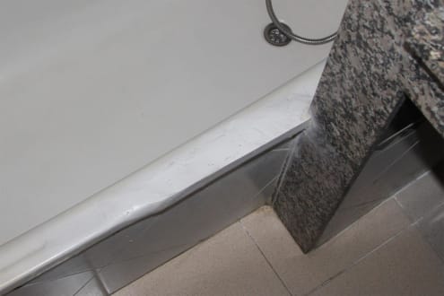 Bad mit "reparierter Badewanne". Ecken & Fugen!