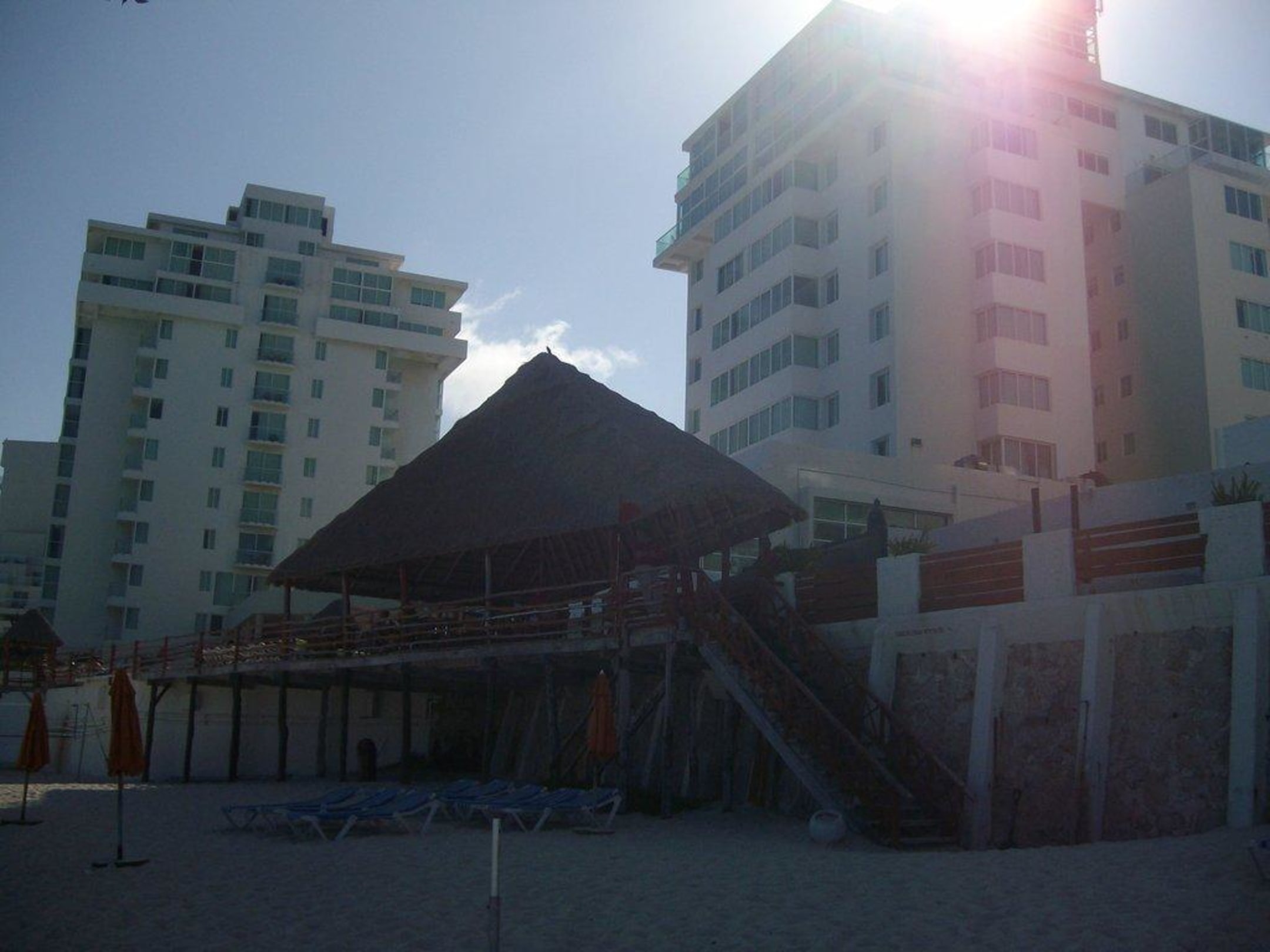 Hier sieht man, dass gegen Nachmittag die Sonne hinter den Hotels verschwindet und Schatten spendet (da muss man sich nen sonnigen Fleck am Strand schon suchen)