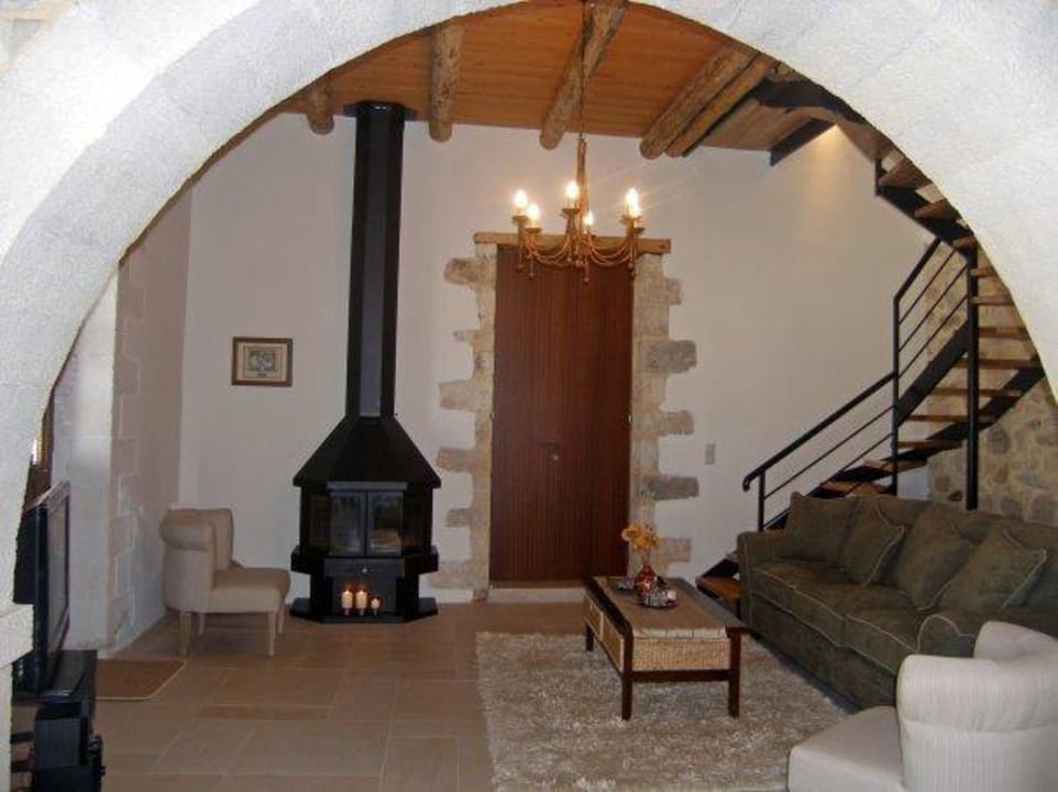 Living room with sofa, TV, DVD, fireplace