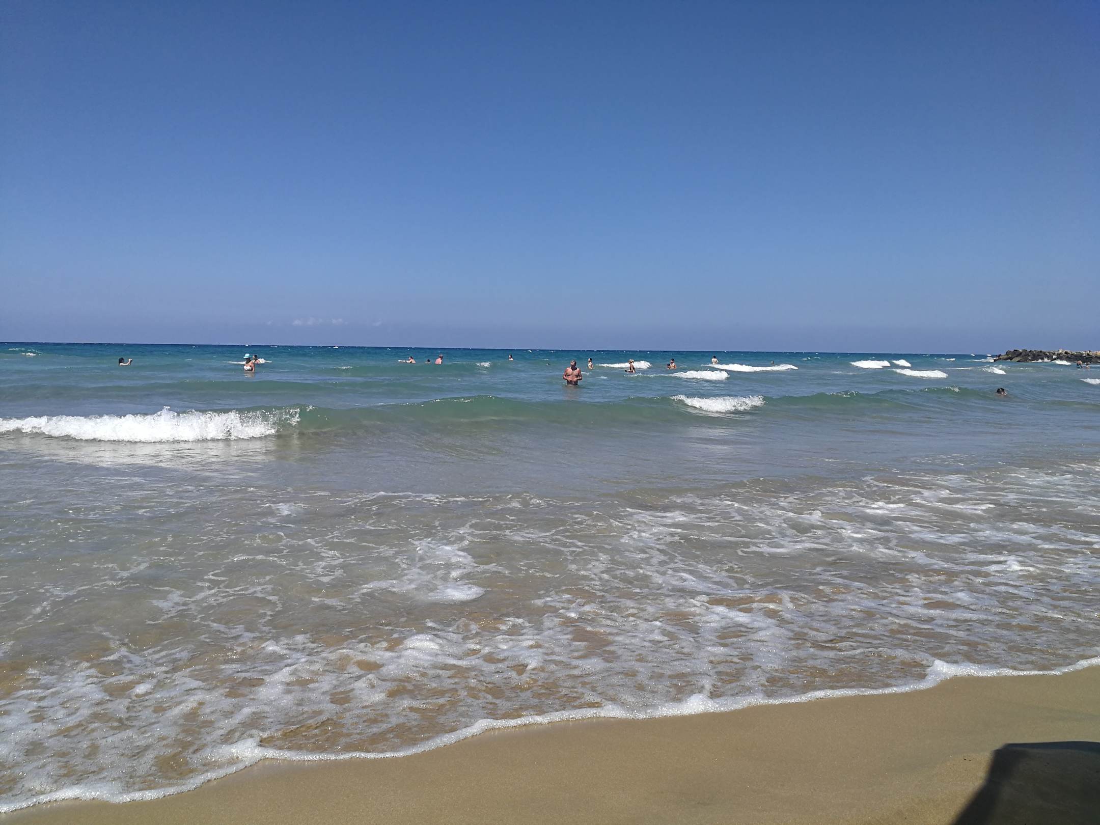 Flach abfallender Sandstrand mit klaren sauberen Wasser.