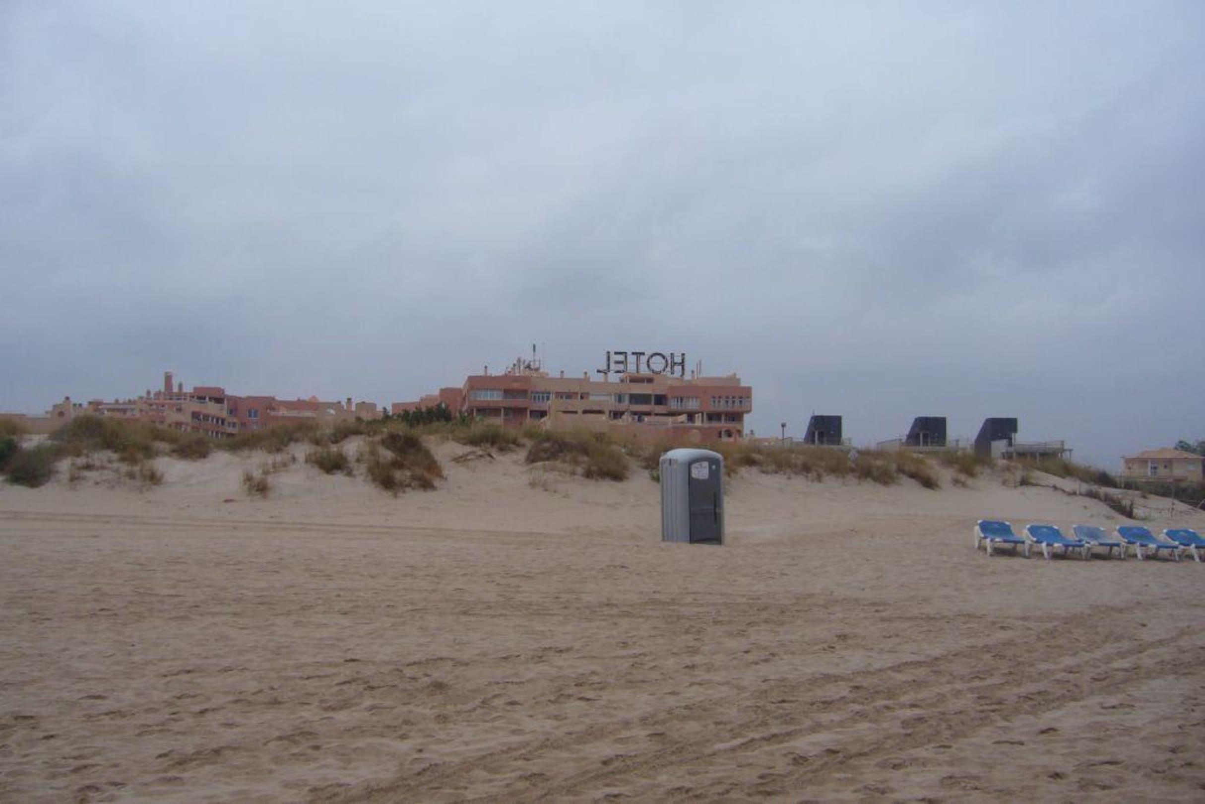 Das Dixie Klo vor dem Hotel,Benutzung auf eigene Gefahr