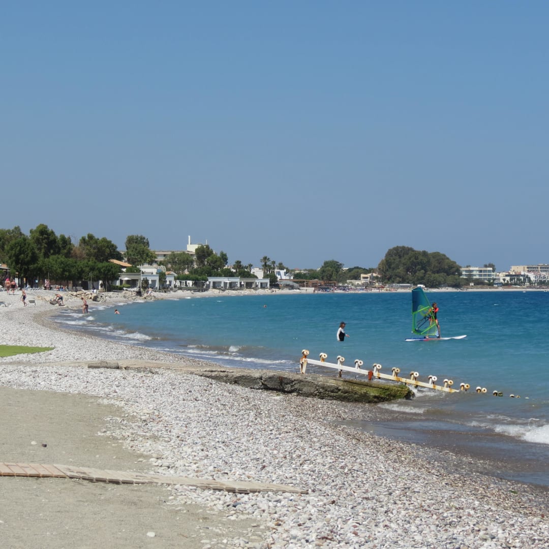 Hoteleigner Strand, leider kein San sondern Steine. Badeschuhe empfehlenswert !