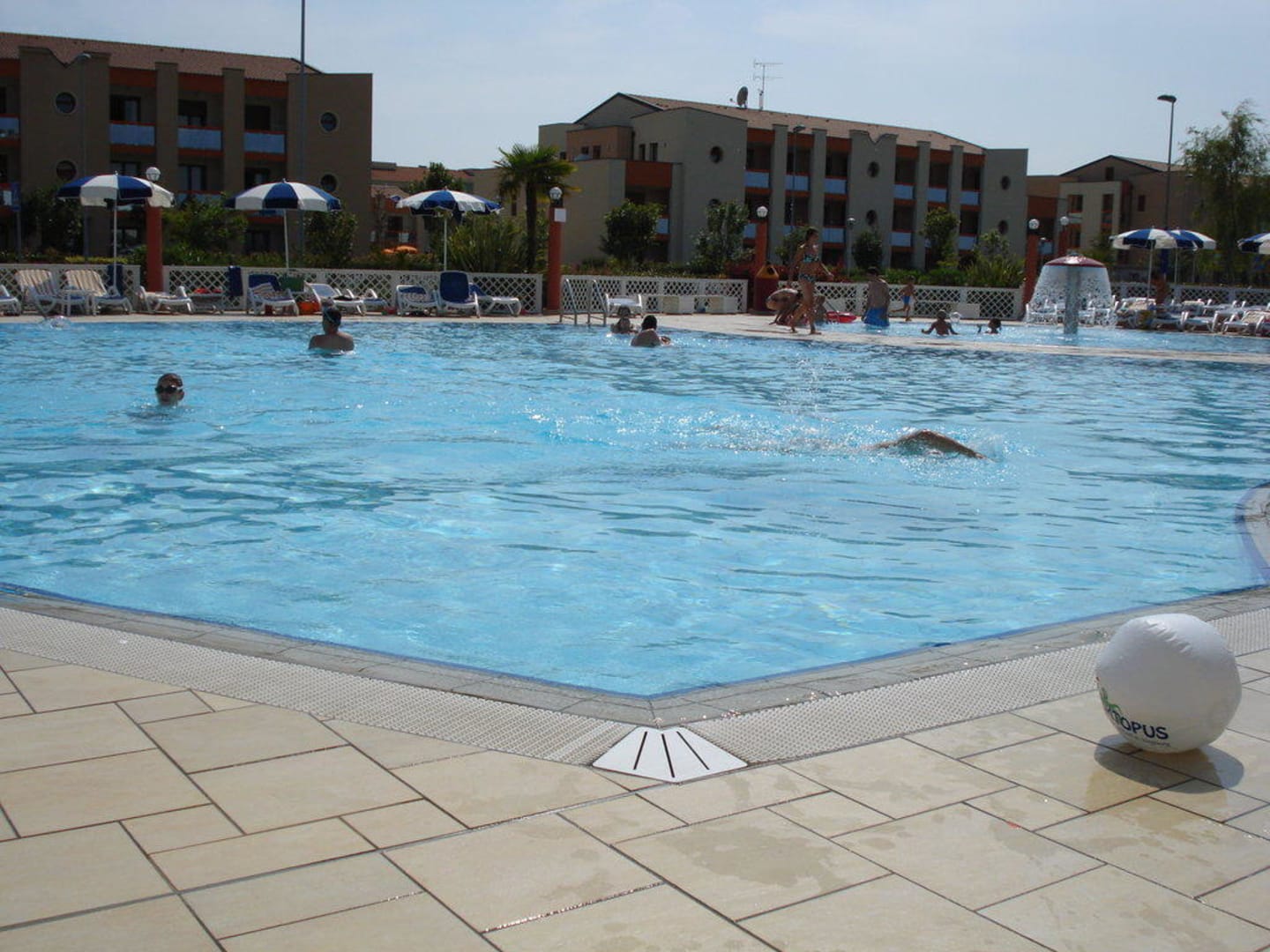 Weiträumige Poolanlage mit Extrabecken für die Kleinen.