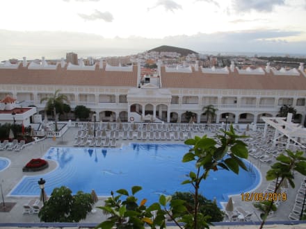 Eine traumhaft schöne Anlage auf Teneriffa namens Hollywood Mirage! Dort drüben, wo der Treffenaufgang zu sehen ist, das ist der Block "Charly Chaplin". Hier wohnte ich in einem Appartment auf zwei Stockwerken.