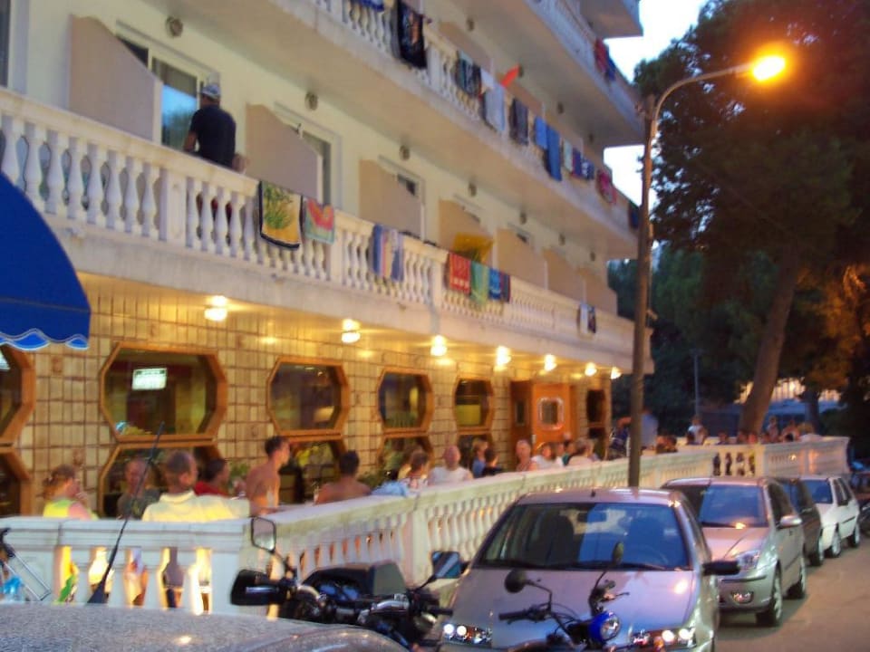 Terrasse Hotel Luna ParkAußenaufnahme des Hotels Luna Park am Abend. Die Terasse ist gut besucht und die Stühle sind heiß begehrt.