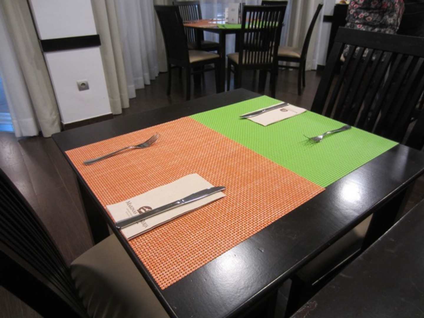 GastroRationalisierungsmaßnahme: Statt Tischdecken jetzt einfache Platzsets. Nichts für den Gast mit Ansprüchen.