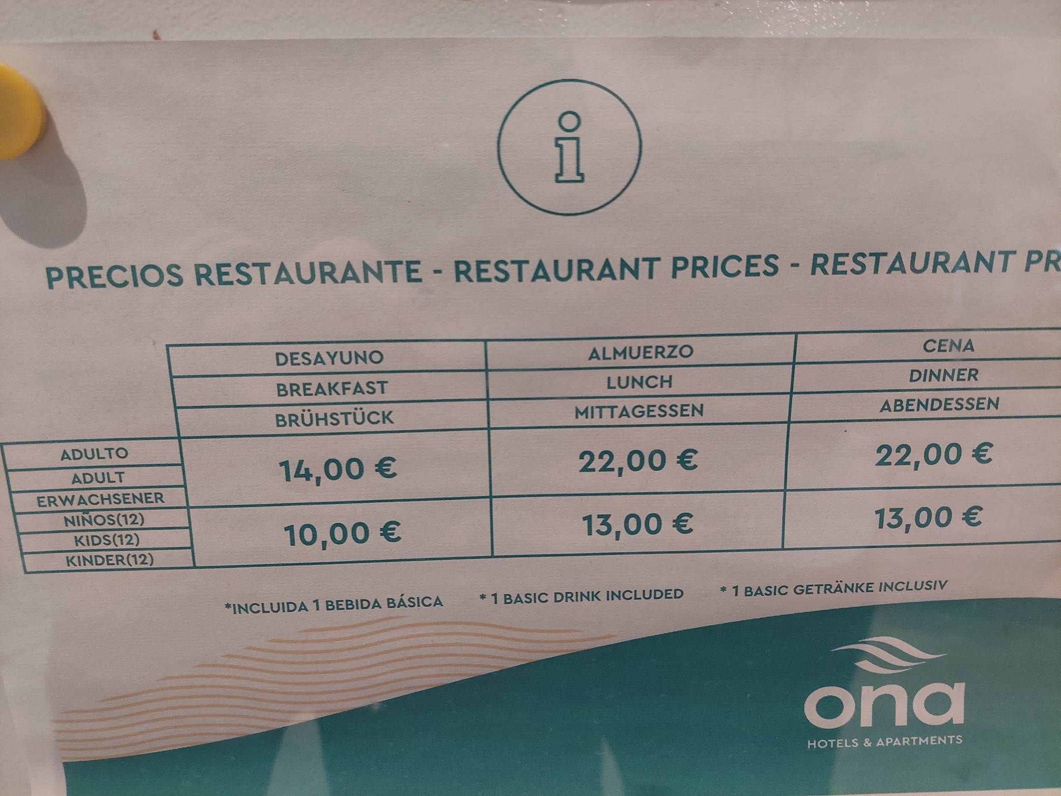 Preise für Zubuchung von Frühstück,Mittag,Abendessen