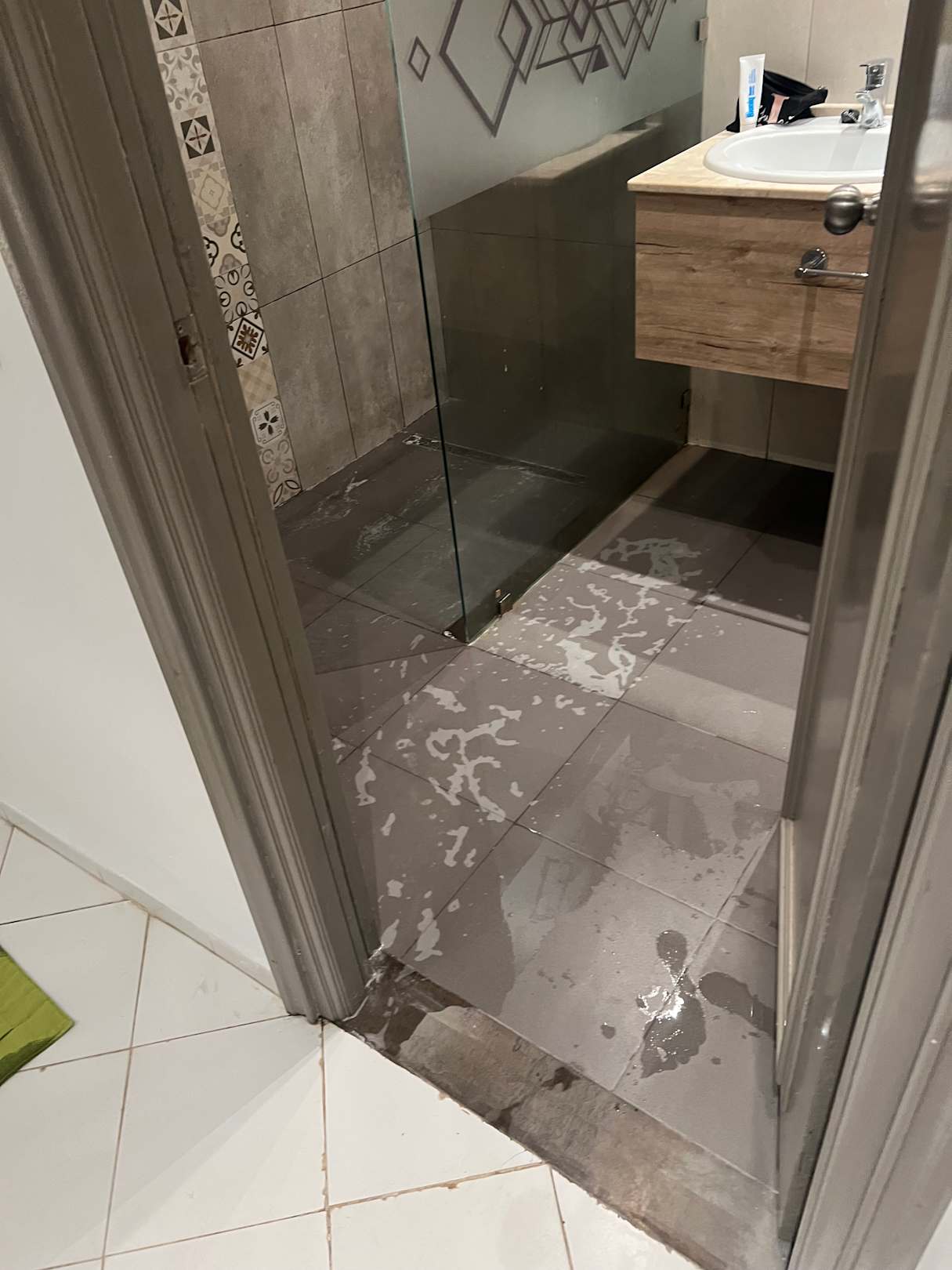 Wasser fließt nach kurzem duschen ins Zimmer