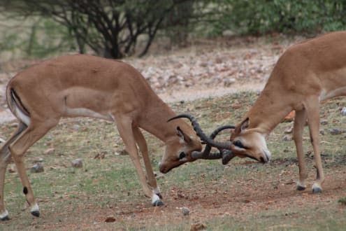 Kampftraining junger Impalas in Ongava