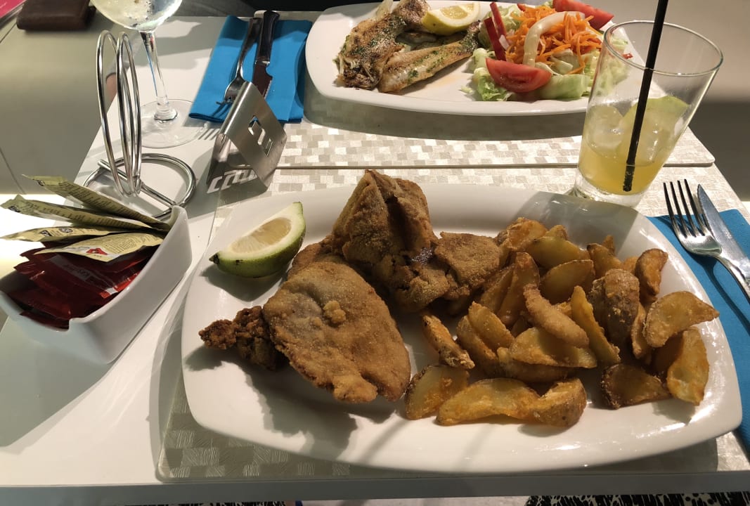 GastroSchnitzel mit Pommes und Fisch mit Salat, extrem Lecker! Alles frisch und lecker