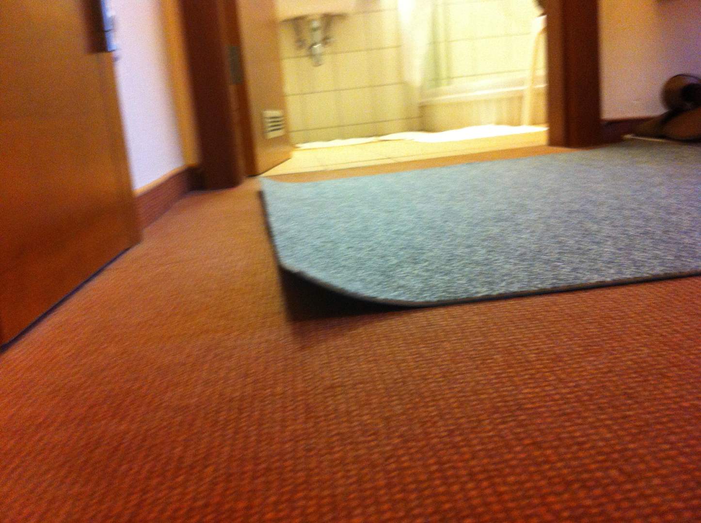 Schmutzflecken mit Teppichstück zugedeckt