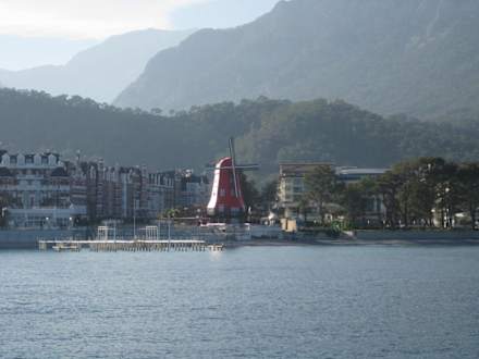 So sieht das Hotel von der anderen Seite, während der Bootstour aus.