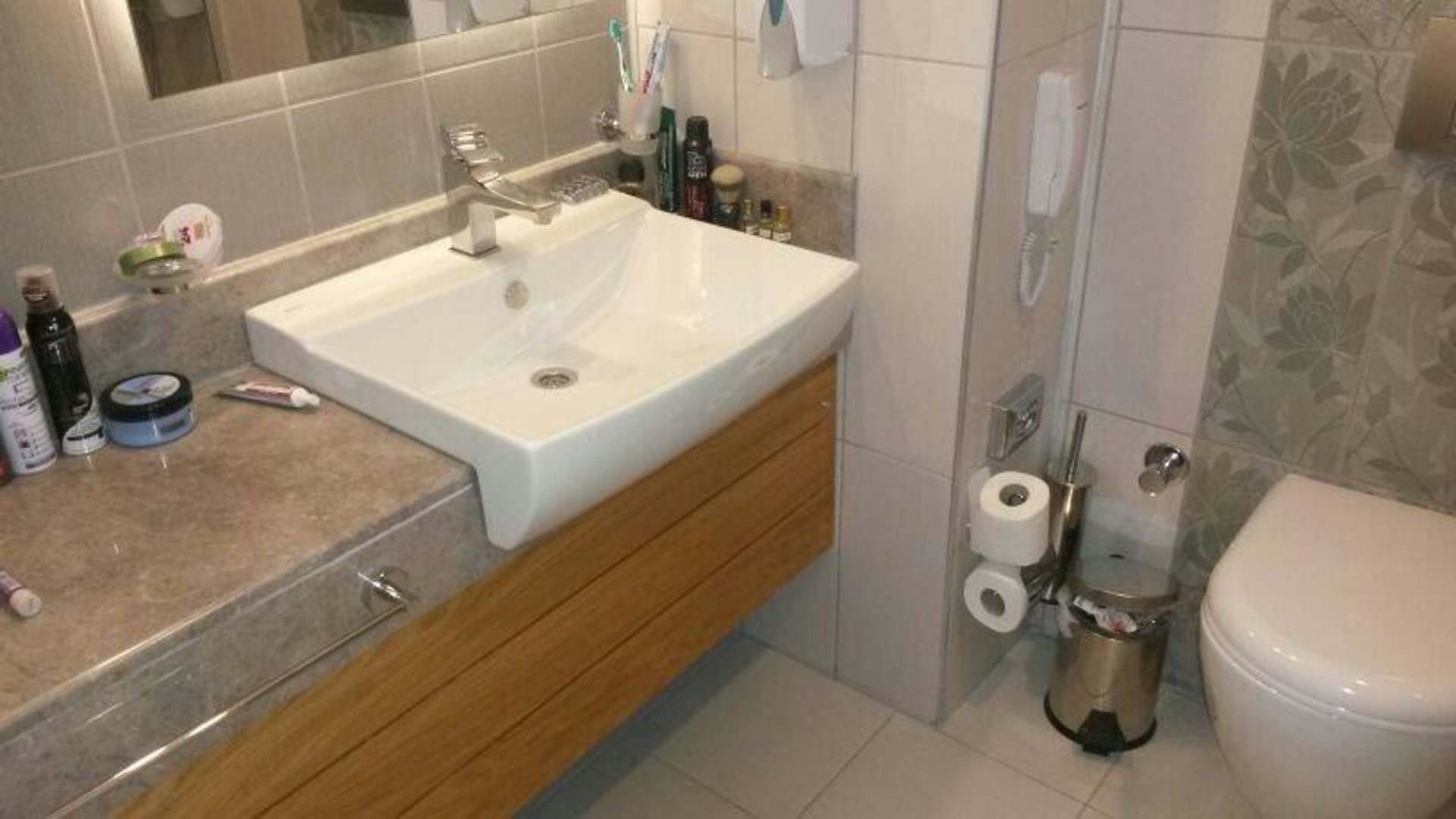 Waschtisch mit viel Ablage und riesen Spiegel