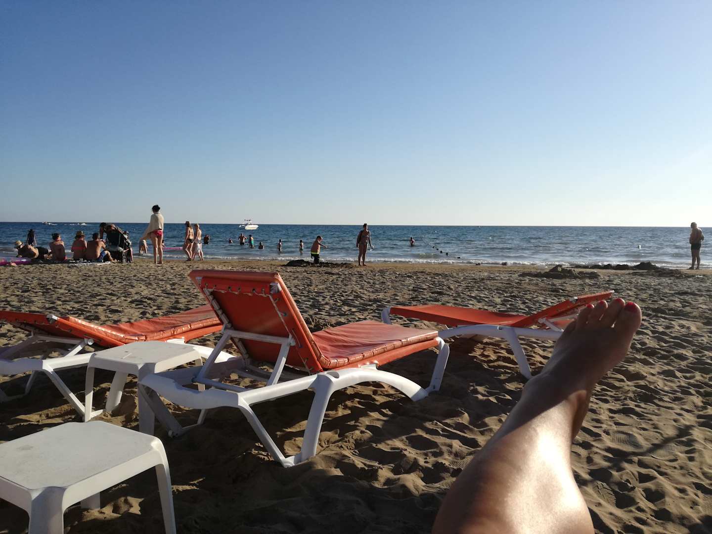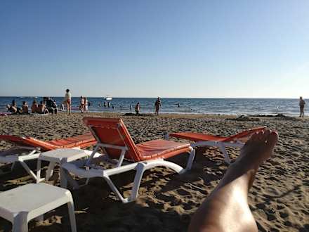Der Sand am Strand ist fein und das Meer flach abfallend