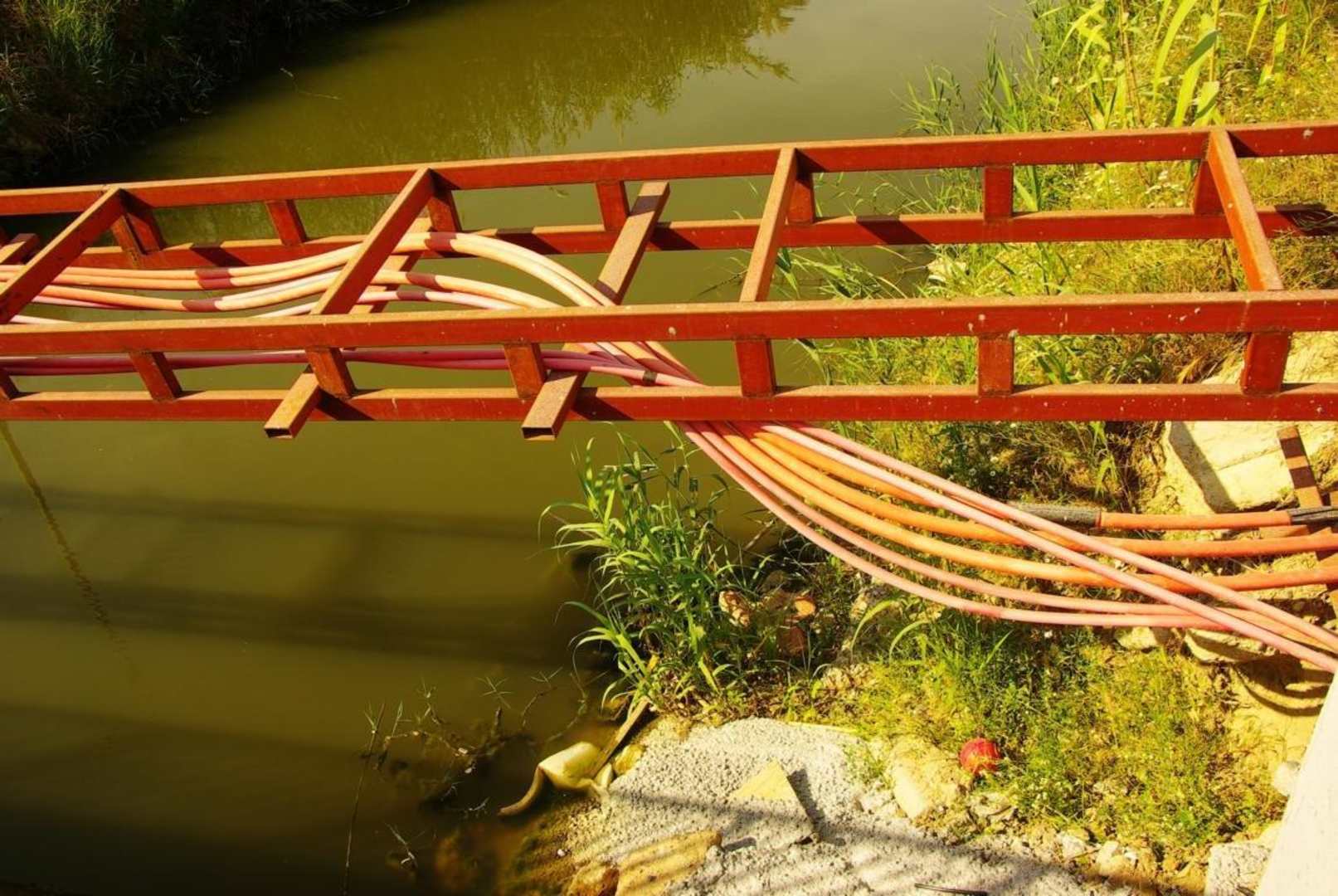 Über den Fluss Stromkabel
