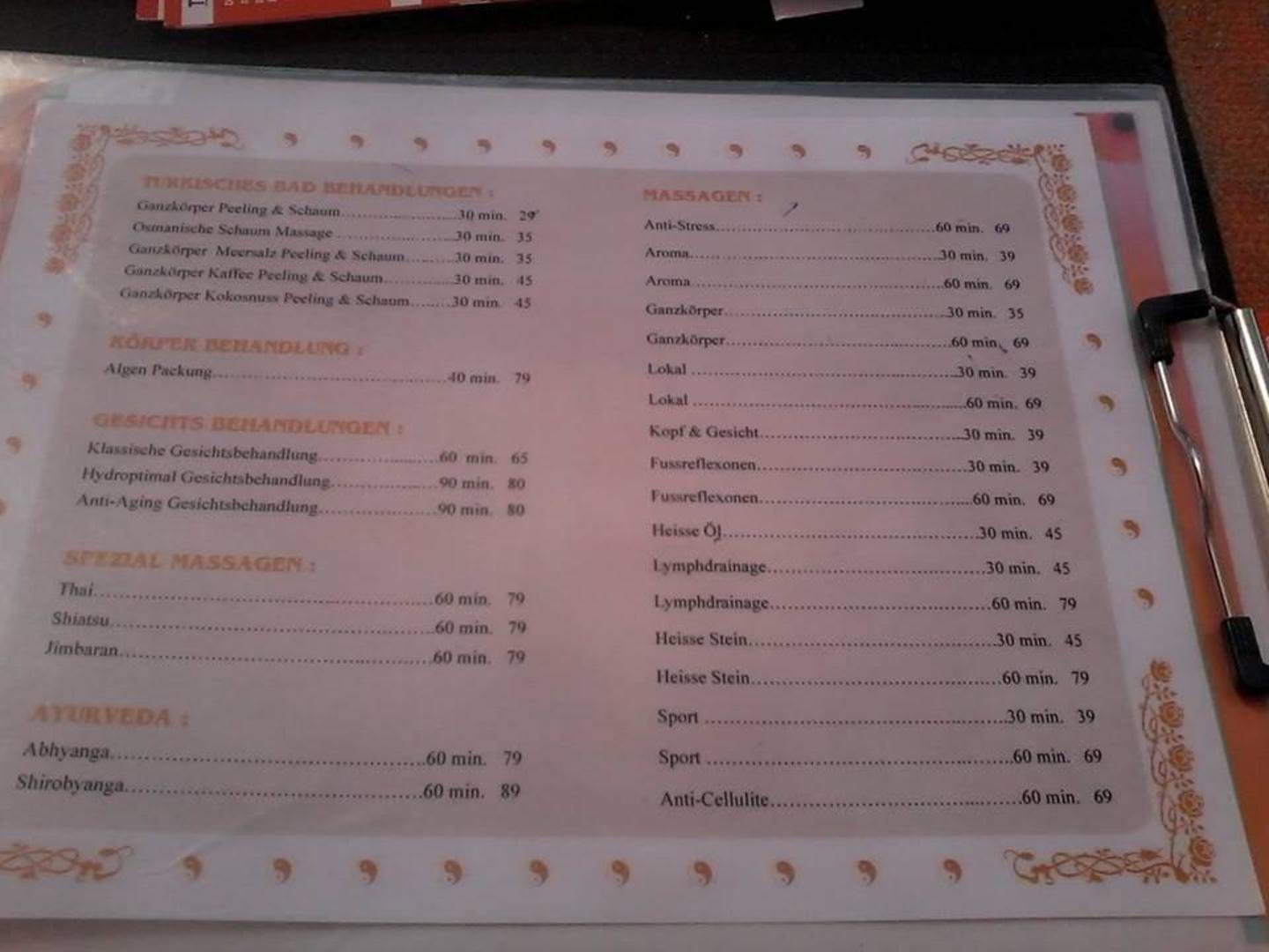 Spa - Preisliste