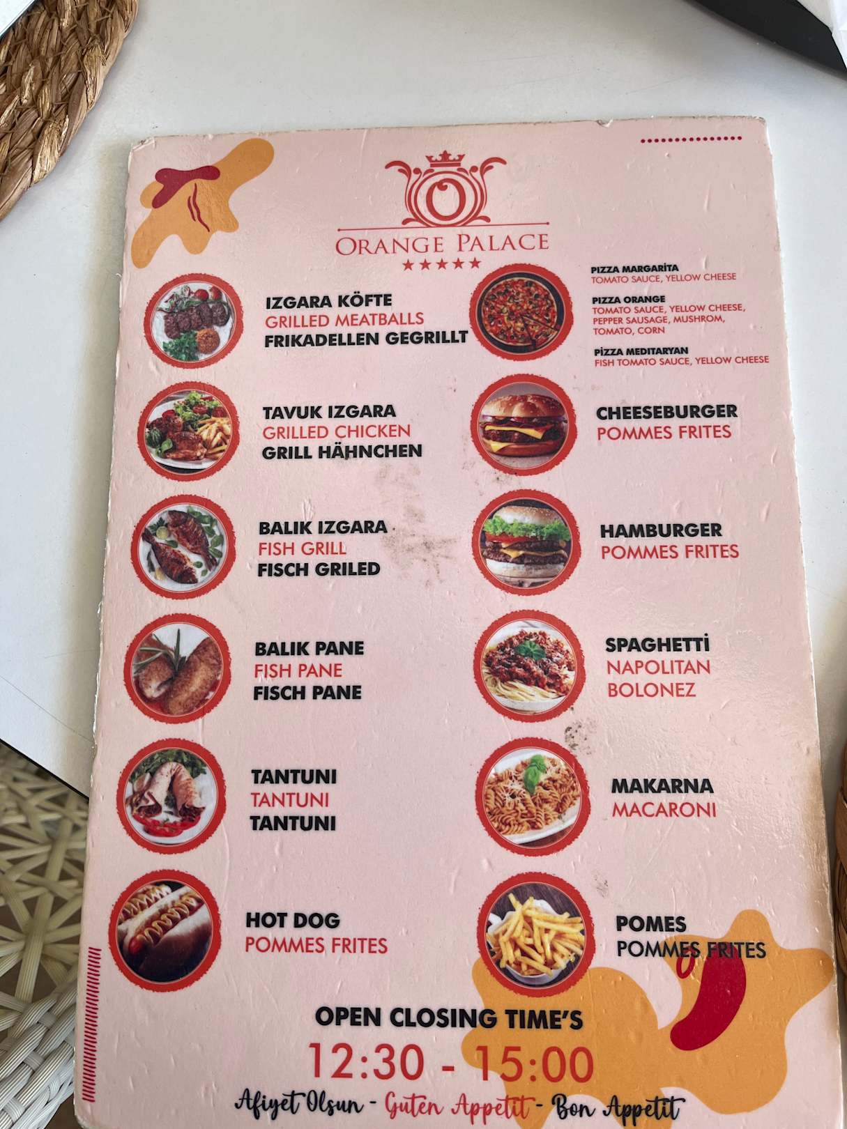 Menükarte am Strand