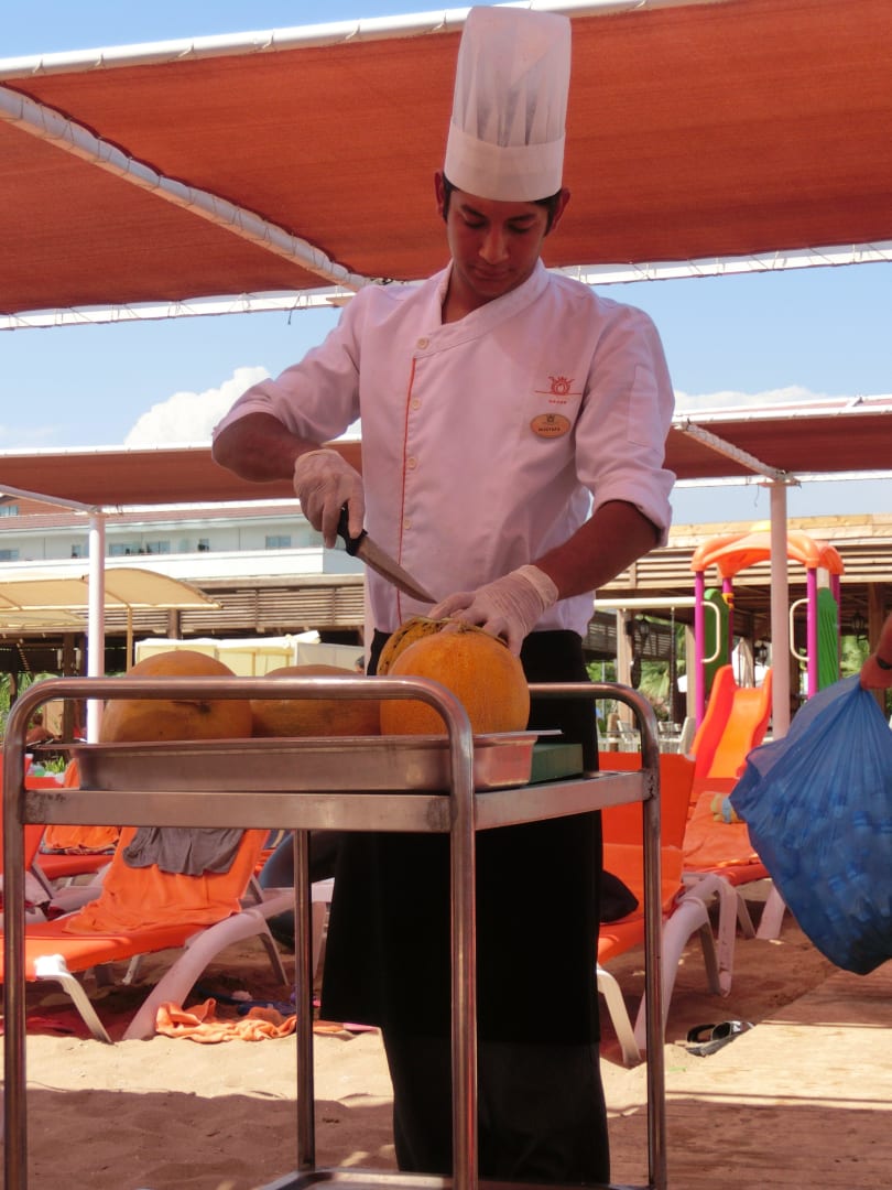 Täglich wurde am Strand + Pool Melone oder Gurken frisch verteilt