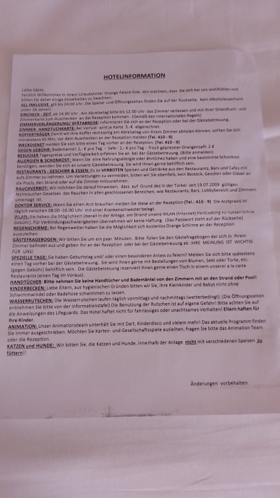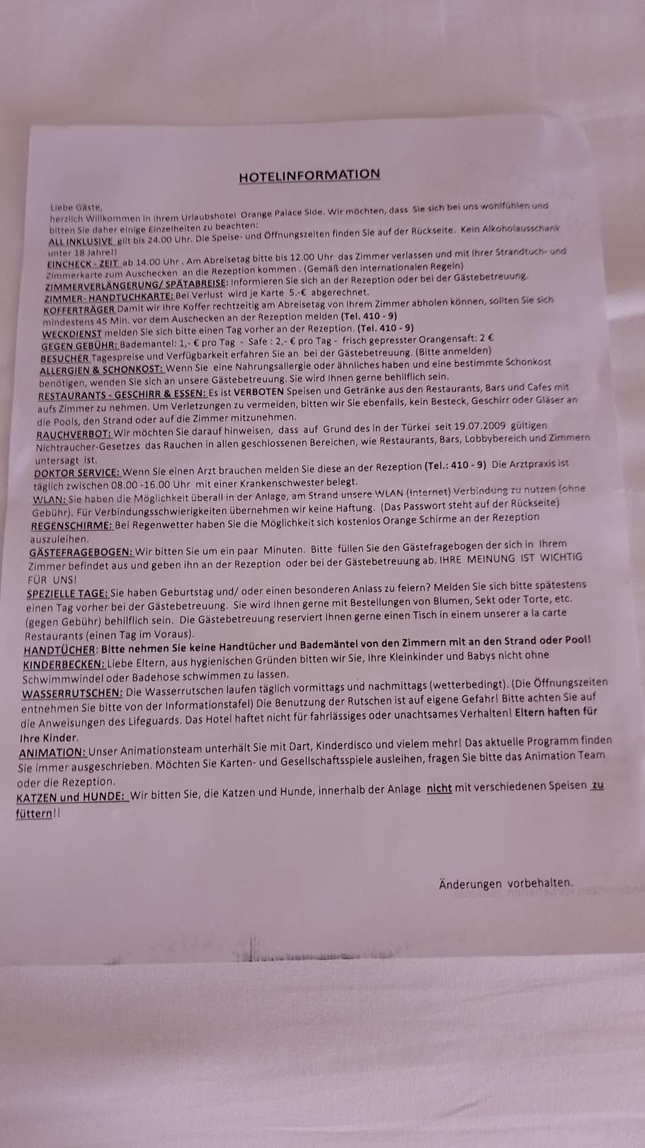 Die Richtlinien des Hotel's.