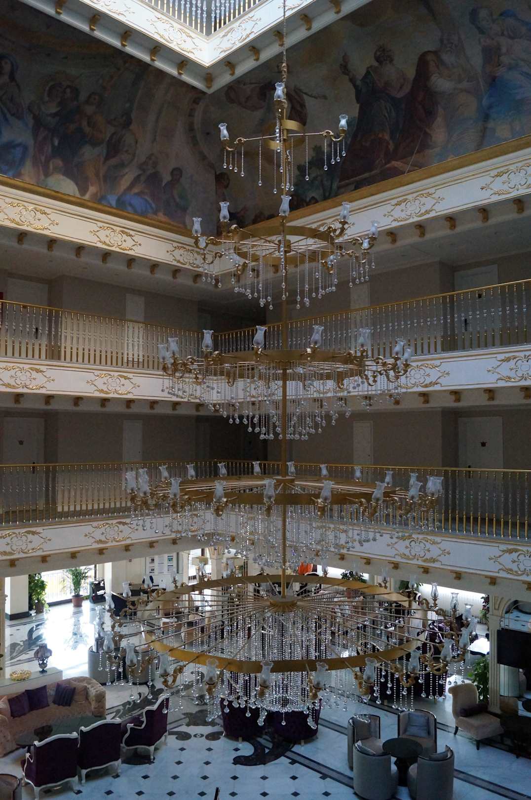 Leuchter in der Lobby geht über mehrere Etagen