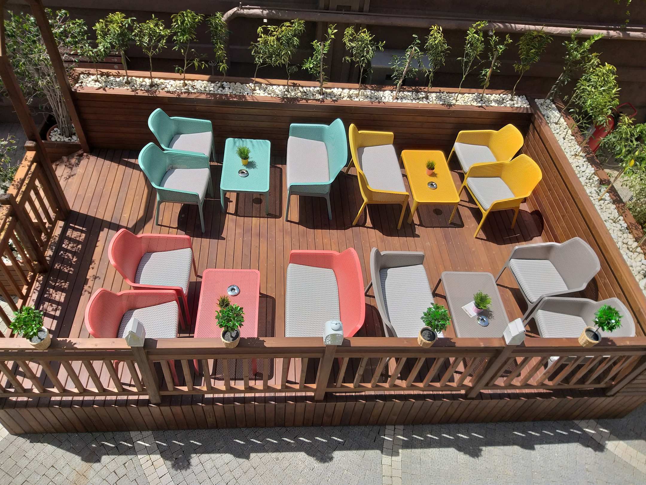 Sitzgelegenheiten im Außenbereich.