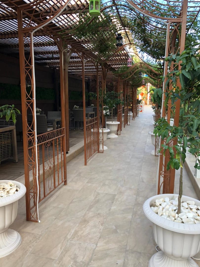 Seitenweg zum Pool hin Sitzmöglichkeiten sind draußen vorhanden