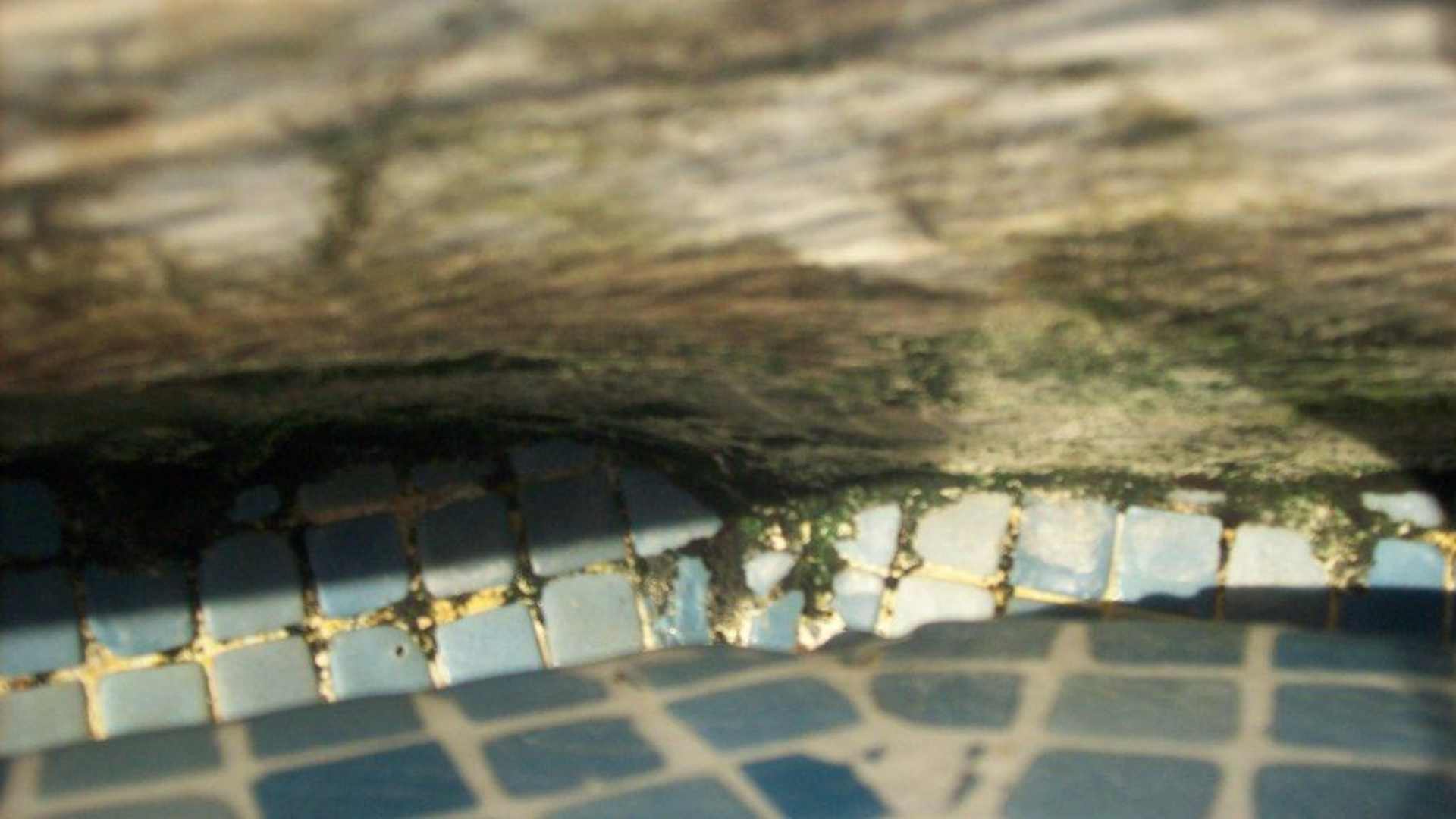 Hier sieht man deutlich den Schimmel in der Überlaufrinne.