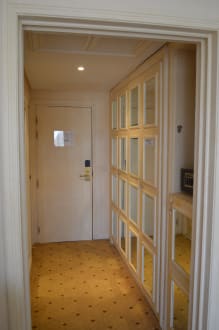 Eingangsbereich vom Zimmer mit verspiegeltem Wandschrank (rechts)