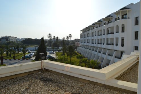 Blick vom Zimmer in Richtung Einfahrt des Hotels