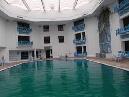 Hotelinnenpool mit dunklem Wasser-