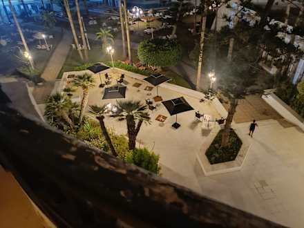 Der Blick von unserem Zimmer auf die Sitzgelegenheiten.Müll soweit das Auge reicht