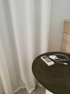 Flecken, vermutlich beim Waschen nicht zu entfernen, am Vorhang.