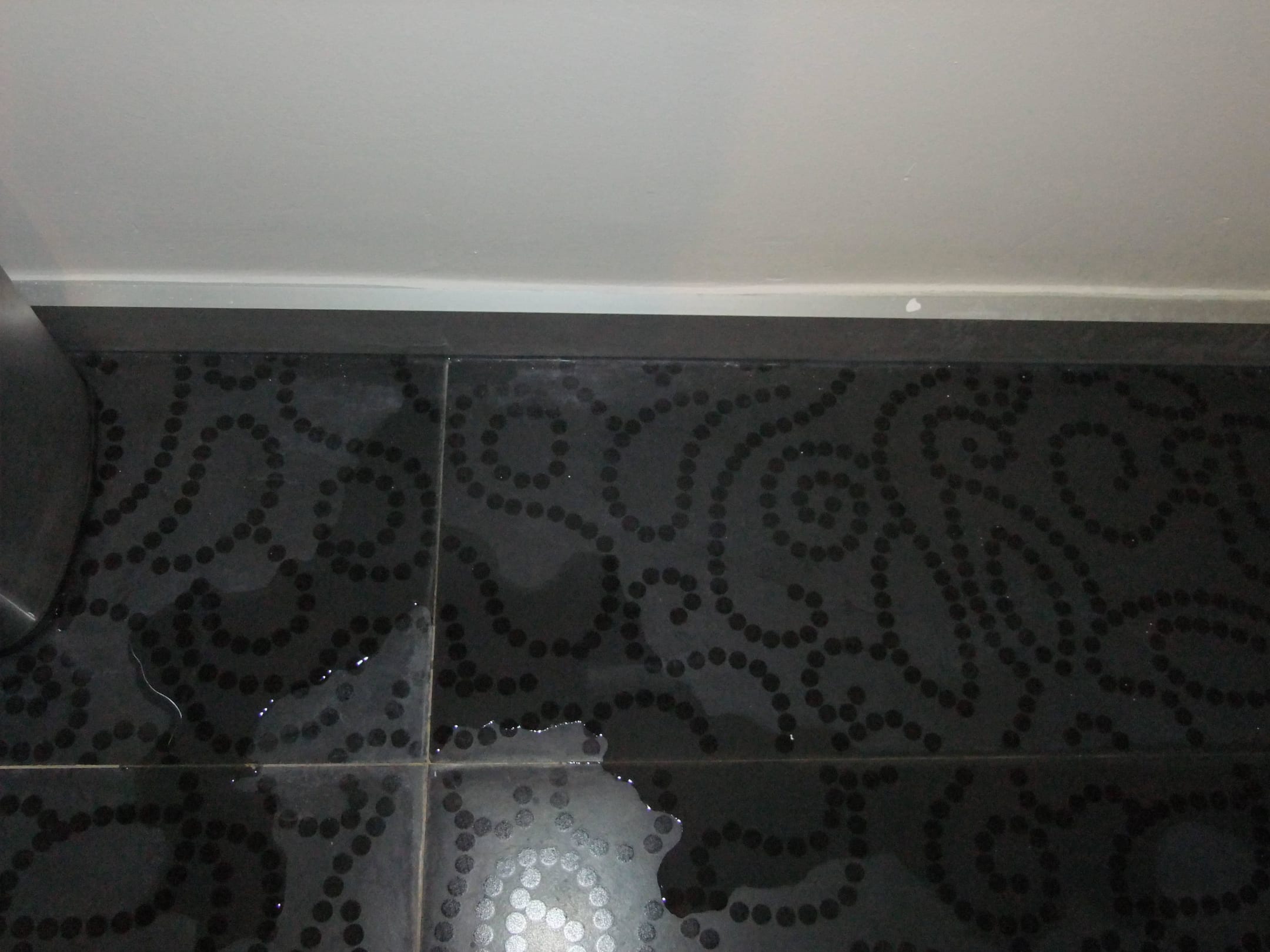 Die tägliche Pfütze im Bereich der Toilette.