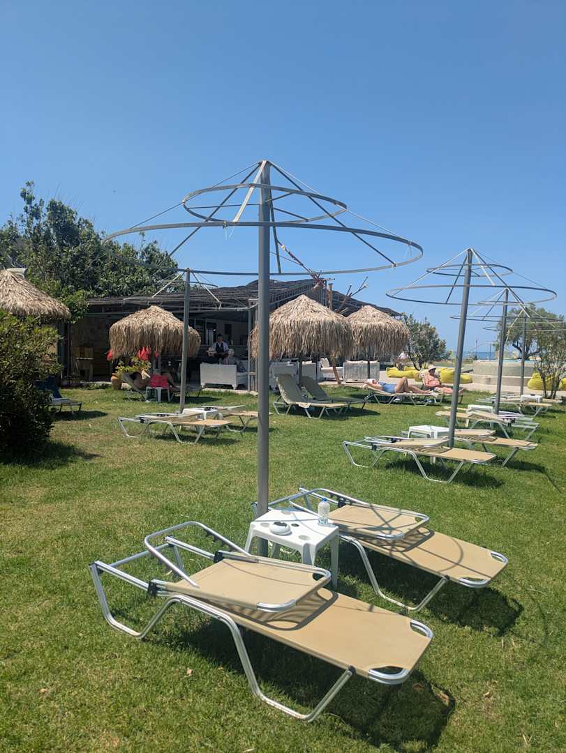Liegestühle mit und ohne Sonnenschirm