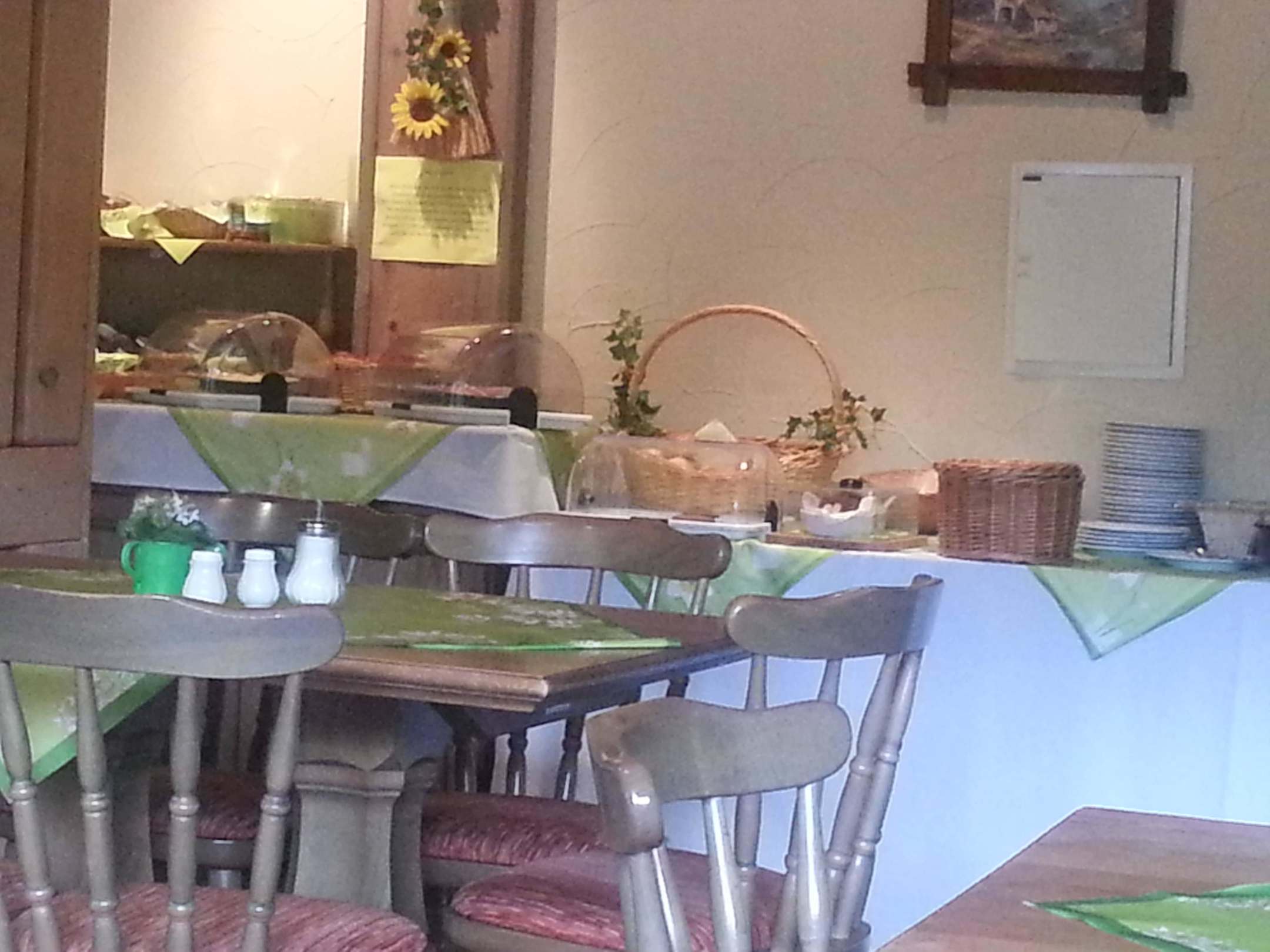 Frühstücksraum im Hintergrund Büffet