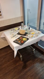 Der Tisch stand 24 Stunden neben dem Fahrstuhl. Ein schöner Empfang! Der Aufschnitt fing an zu gammeln und es müffelte ...... Verantwortlich? Niemand.