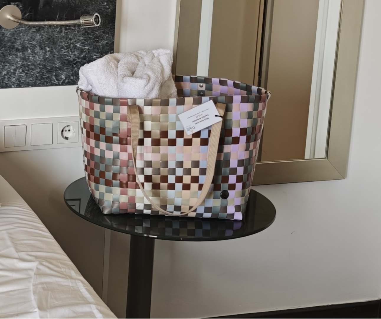 Spatasche mit 2 Handtüchern und 2 Hausschuhen