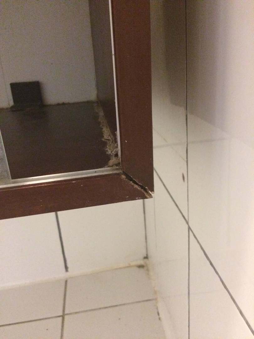 Badezimmer zerschlissener Badschrank
