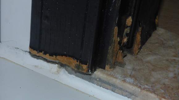 Der Türrahmen mit Schimmelbefall