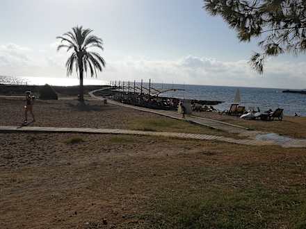 Rechte Seite Strand mit Sand/ Kies beim Reingehen ins Meer, Tiefe okay auch zum Schwimmen
