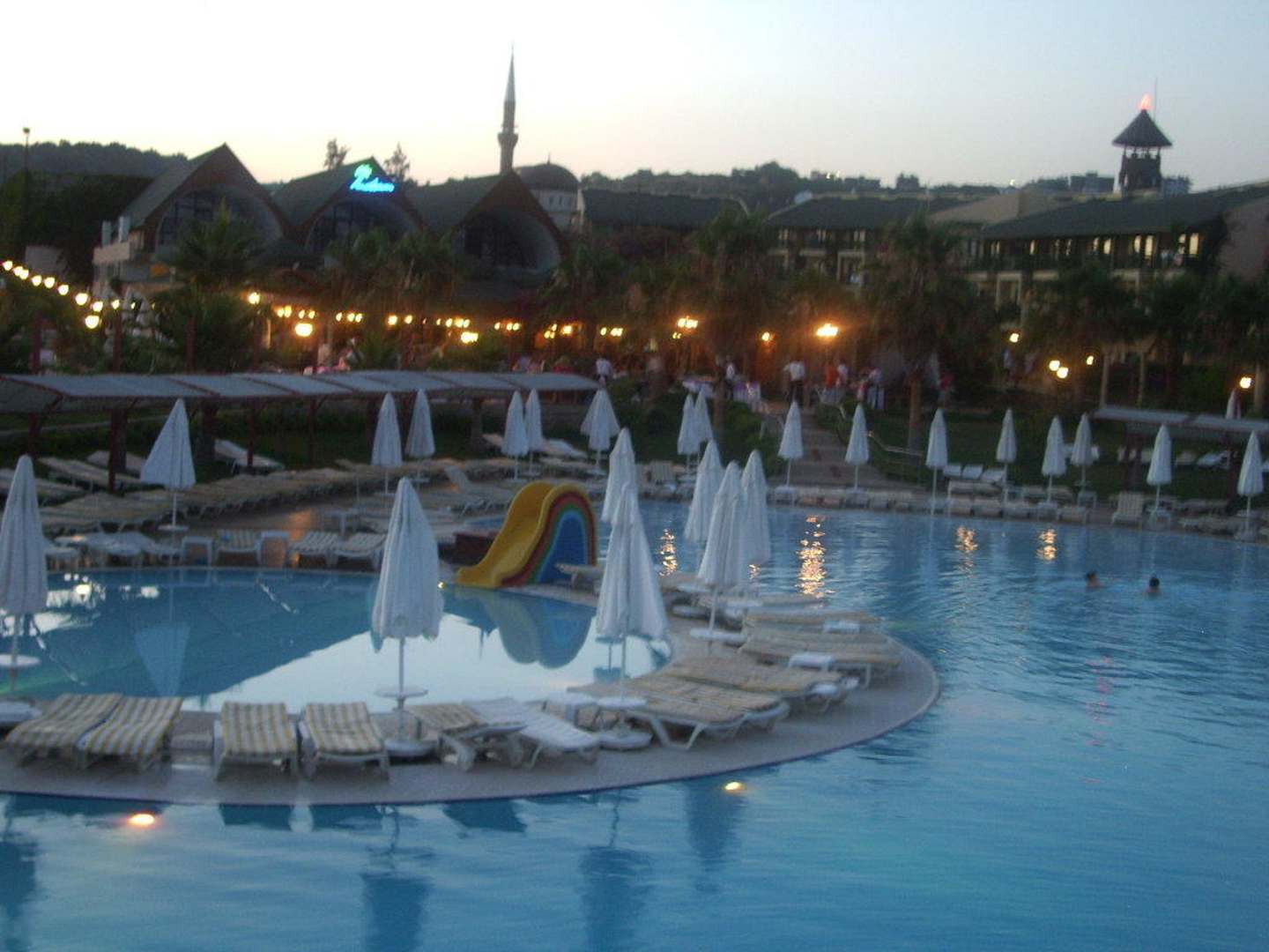 Blick vom Pool zum Restaurant