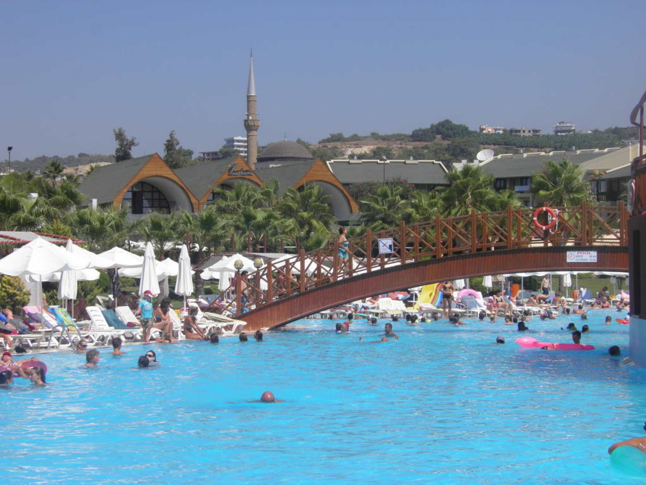 Pool und Restaurant im Hintergrund