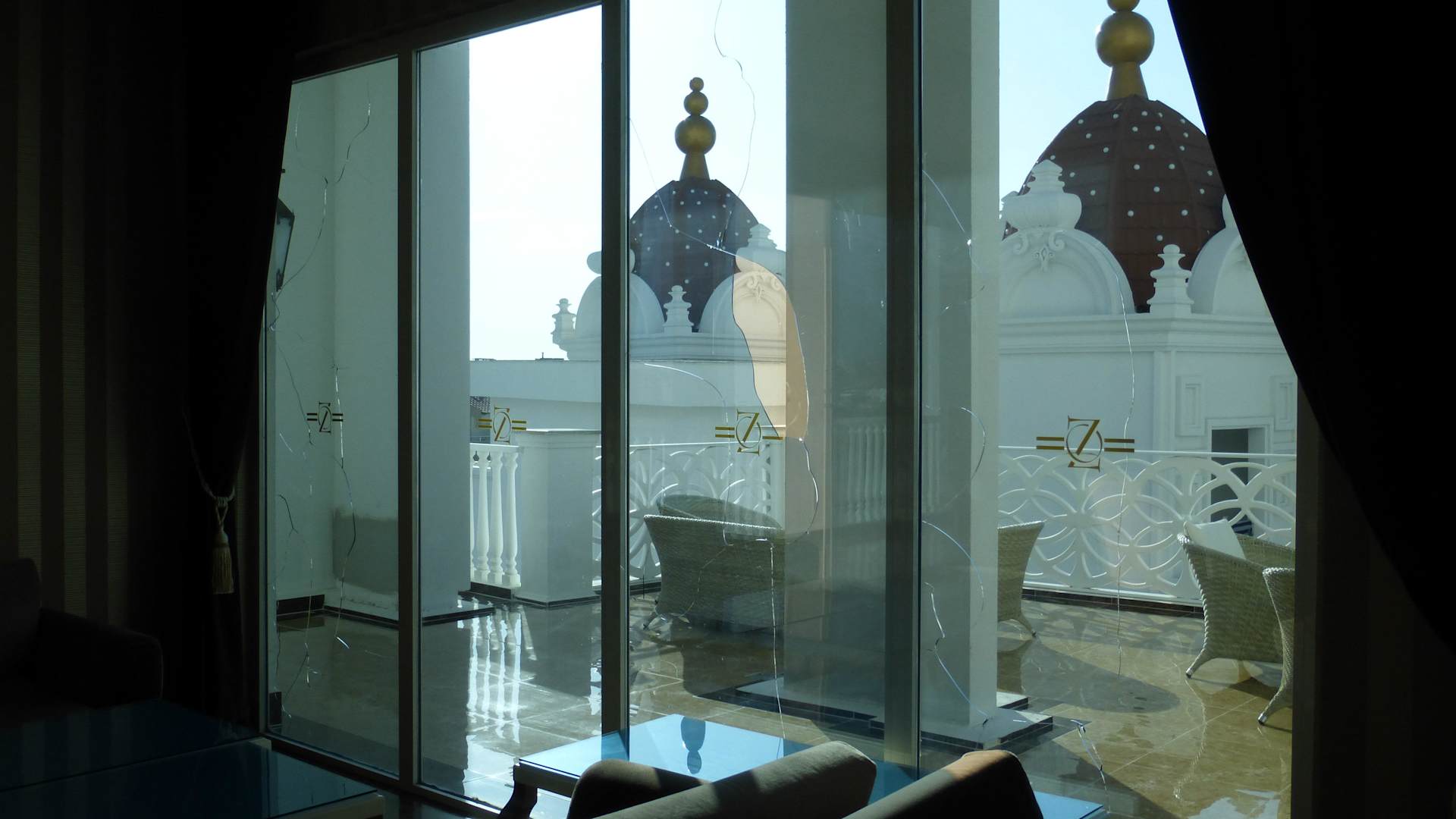 Scheiben kaputt 13 Scheiben waren auf der gesamten Lobbyebene kaputt