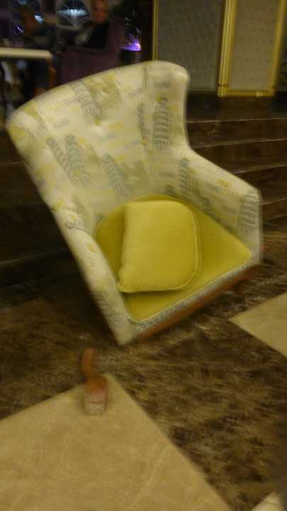 Gebrochene Beinstütze am Sessel in der Bar